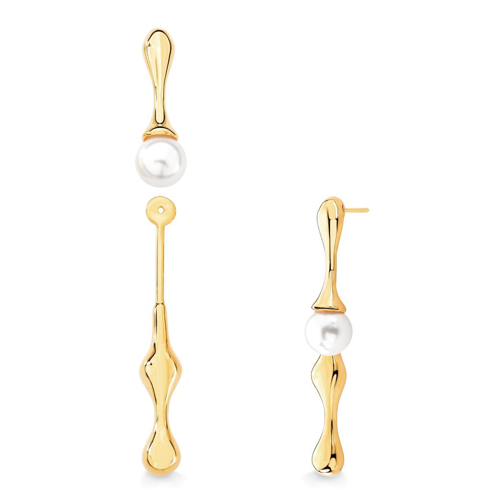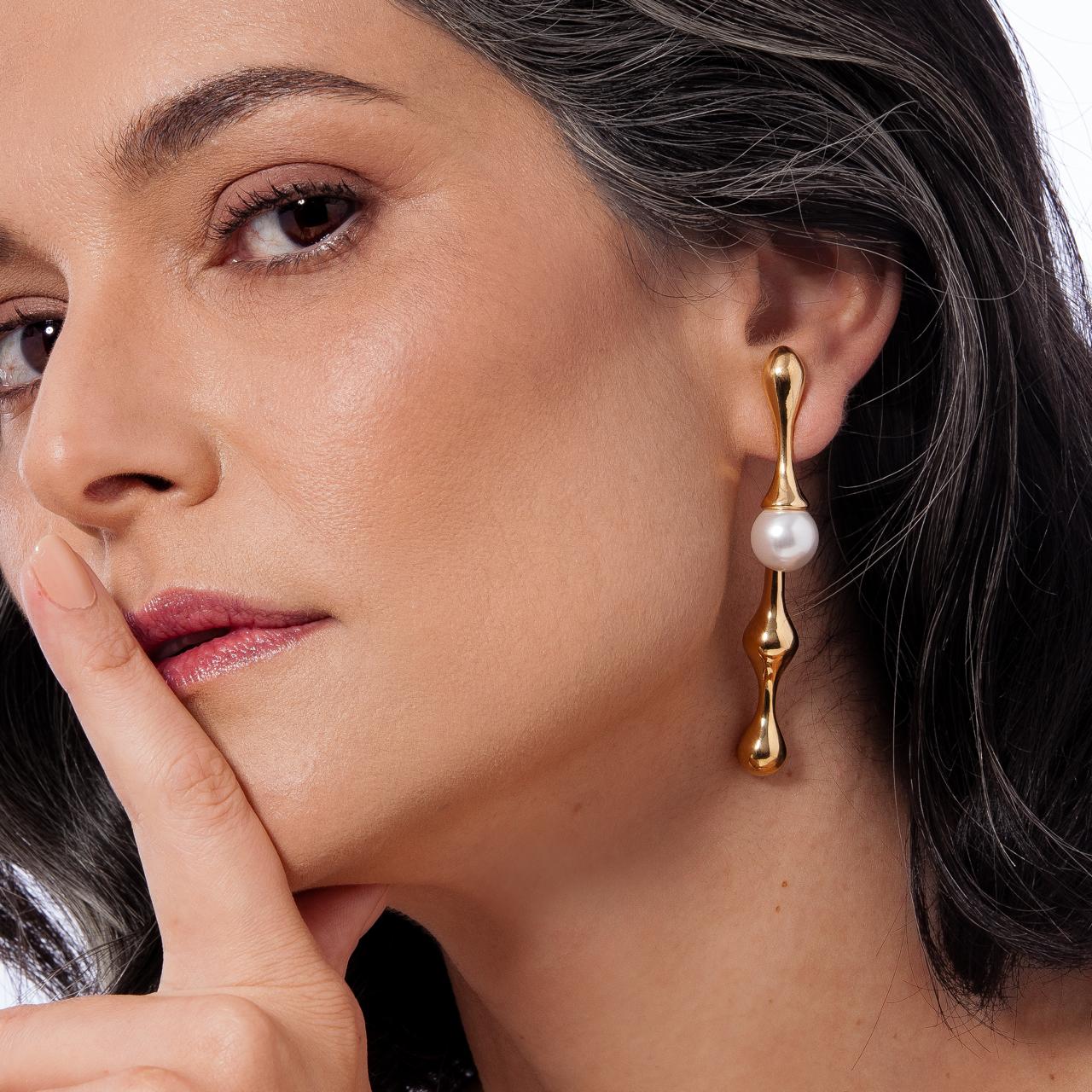O Brinco Sincronia Maria Dolores é uma verdadeira celebração da feminilidade e dos ciclos da vida. Um brinco longo, folheado a ouro e com a composição de uma Pérola, ele tem um design que simboliza as curvas do corpo feminino. O seu destaque é o pingente removível que permite brincar com diferentes formas de uso. Uma peça 2 em 1 que pode ser desmembrada para criar variações assimétricas, com muita versatilidade criando um estilo personalizado. Um brinco que tem uma presença marcante, mas surpreendentemente leve, graças ao seu design oco que mantém o conforto durante o uso. Já o movimento da curva na parte frontal da peça e o pingente que pode ser posicionado atrás da orelha ou lateralmente, refletem o dinamismo e os fluxos da vida cotidiana. O Brinco Sincronia é uma peça atemporal e sofisticada, que se adapta a diferentes estilos e ocasiões, garantindo um visual elegante, ao mesmo tempo que oferece a liberdade de escolha para quem o usa.
